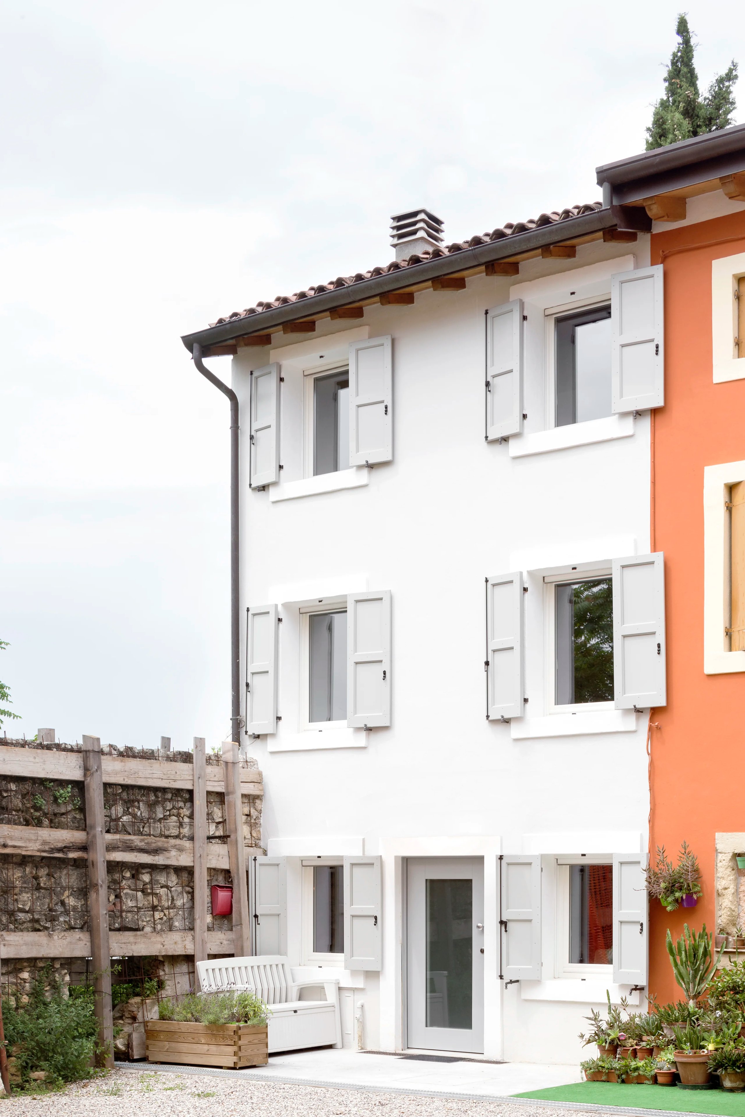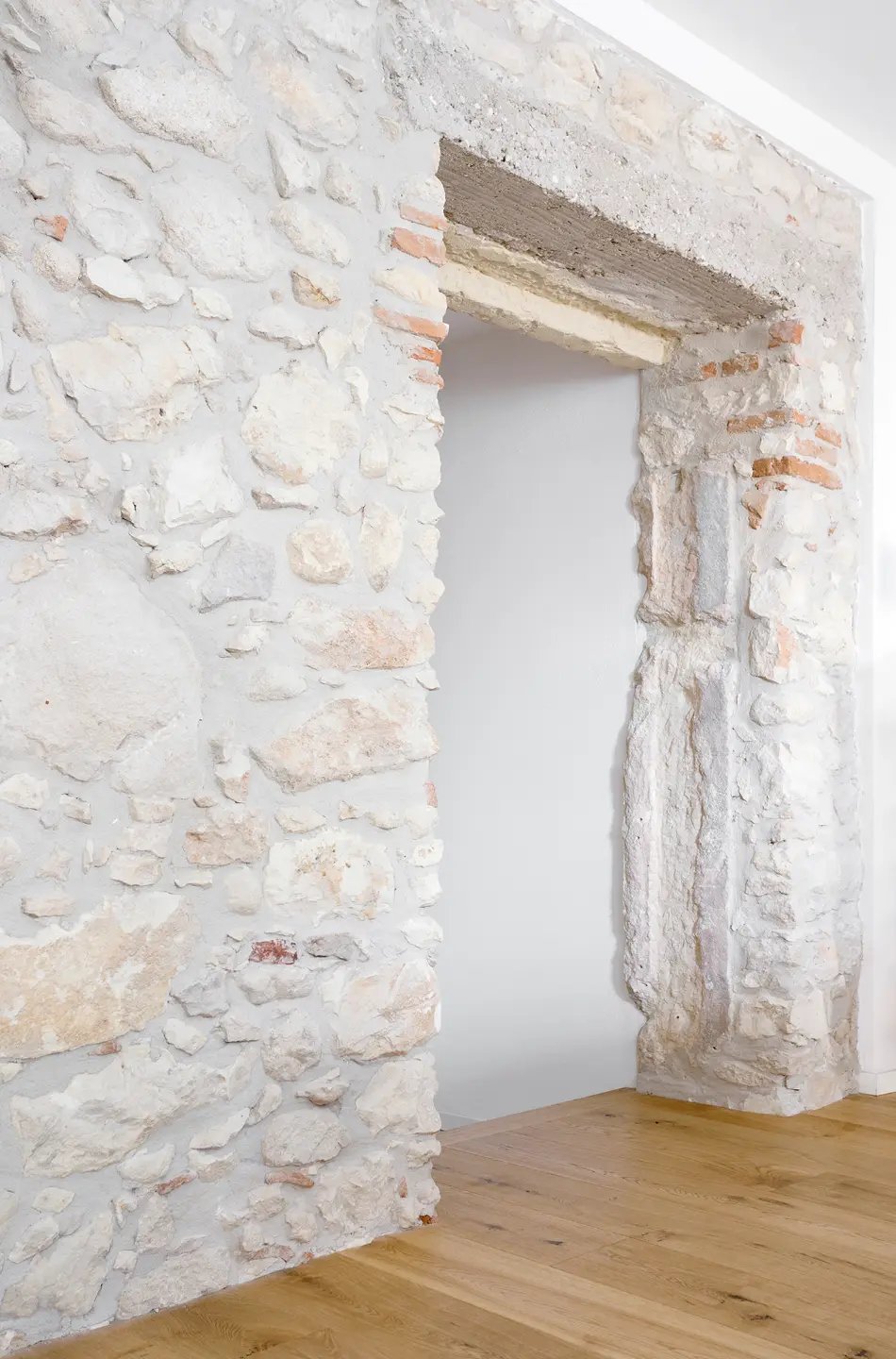 Una vecchia casa in una corte della Valpolicella ed una giovane coppia. Tinte tenui e colori chiari, legno e pietra locale, un lavoro di sottrazione minuzioso per riportare alla luce le antiche tessiture murarie.