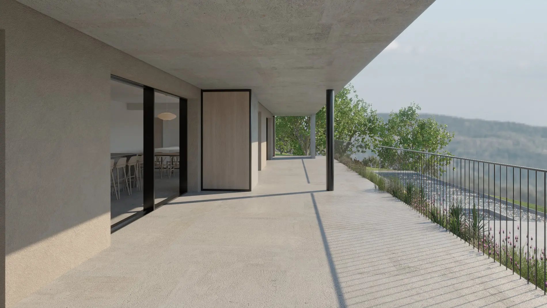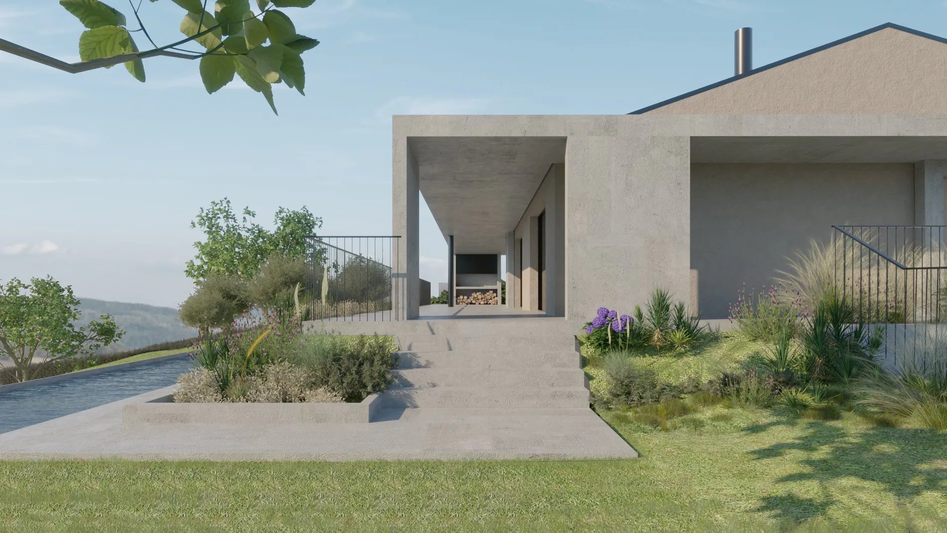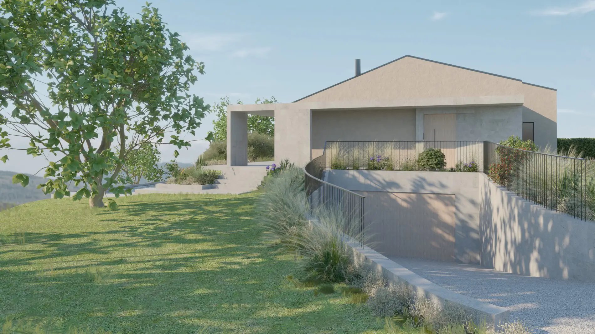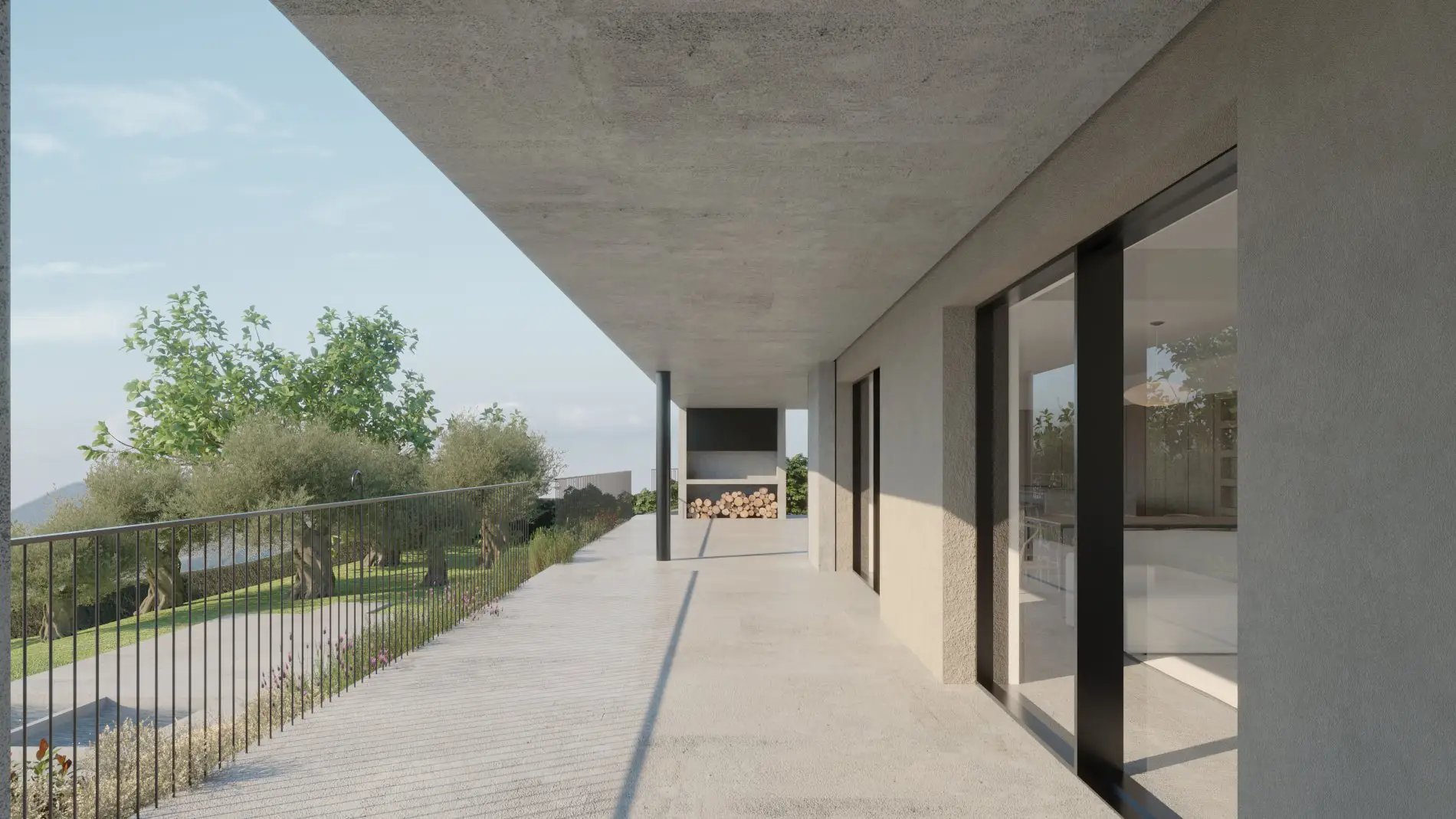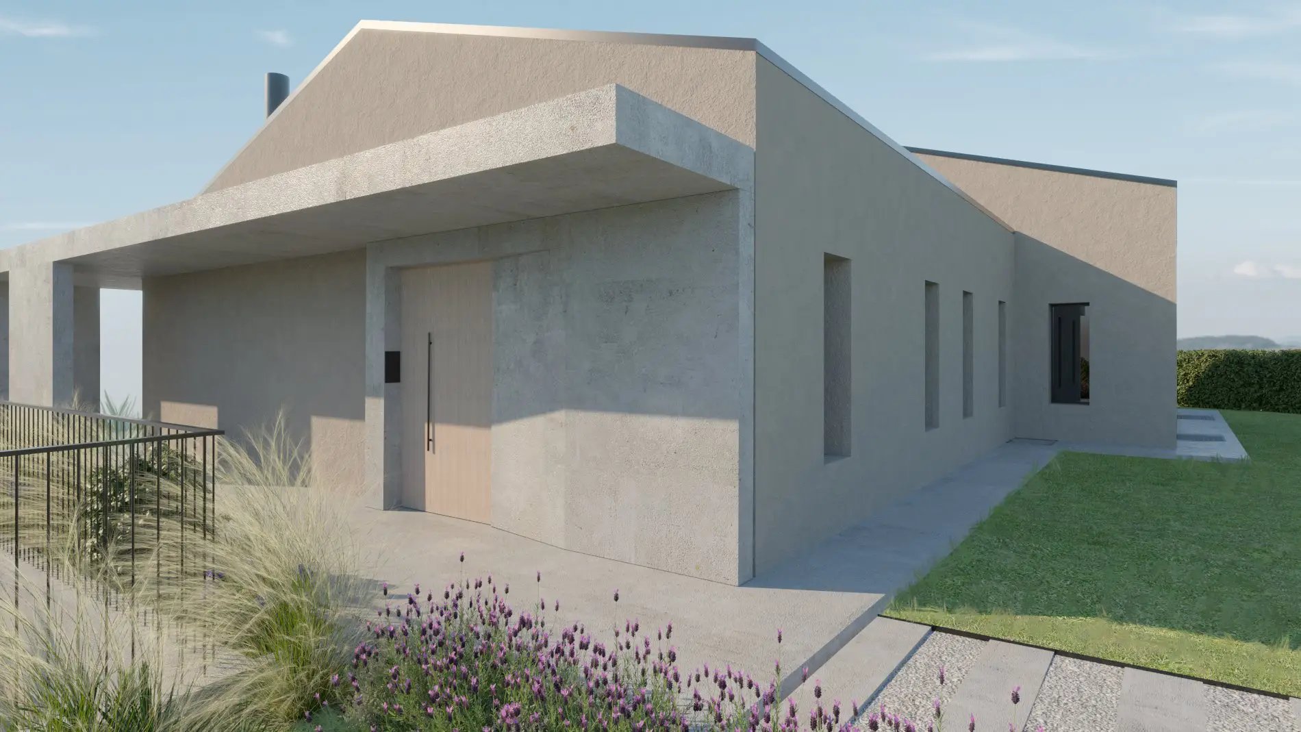 Il progetto prevede l’inserimento di un ampio portico coperto e di nuove grandi vetrate panoramiche che affacciano a sud.