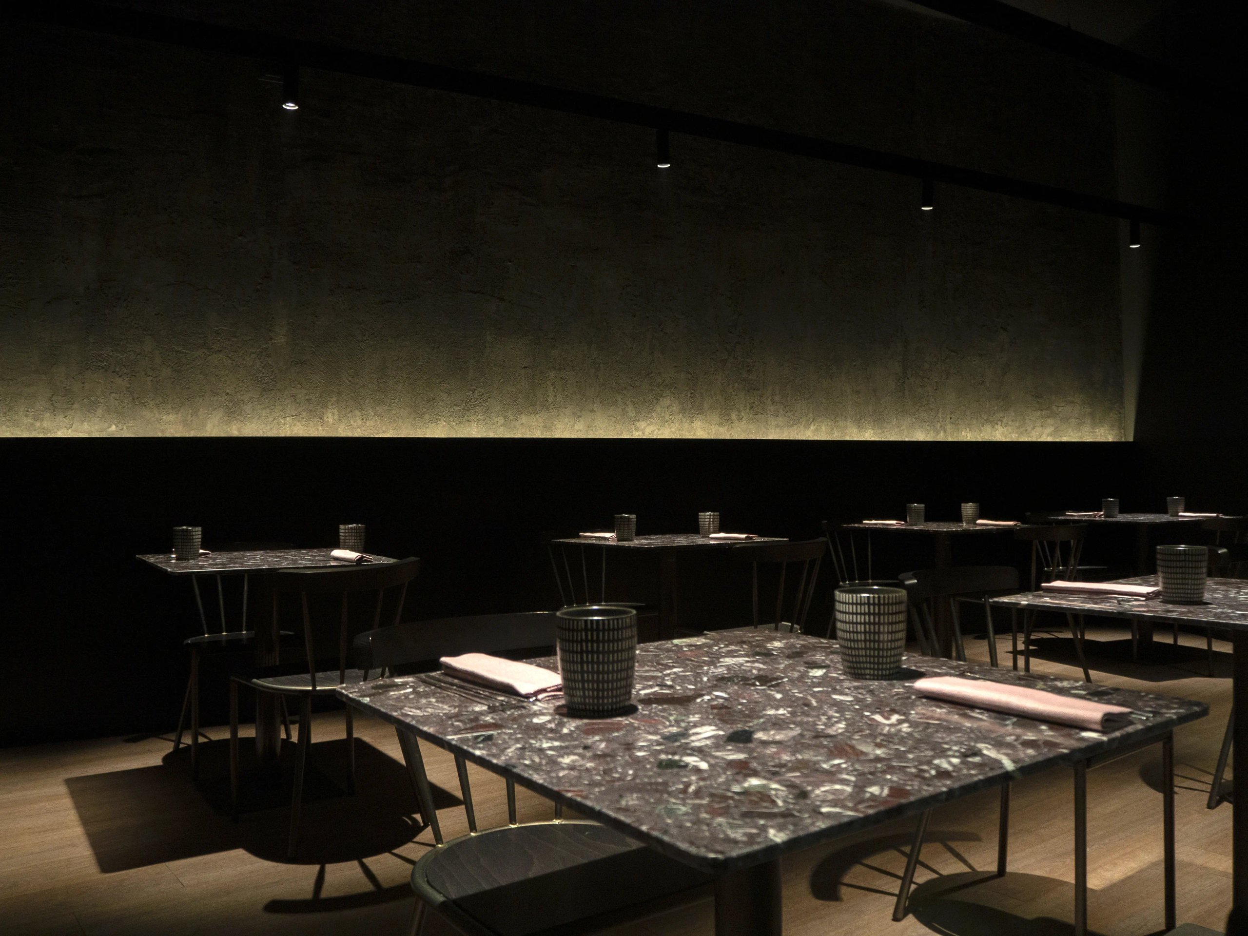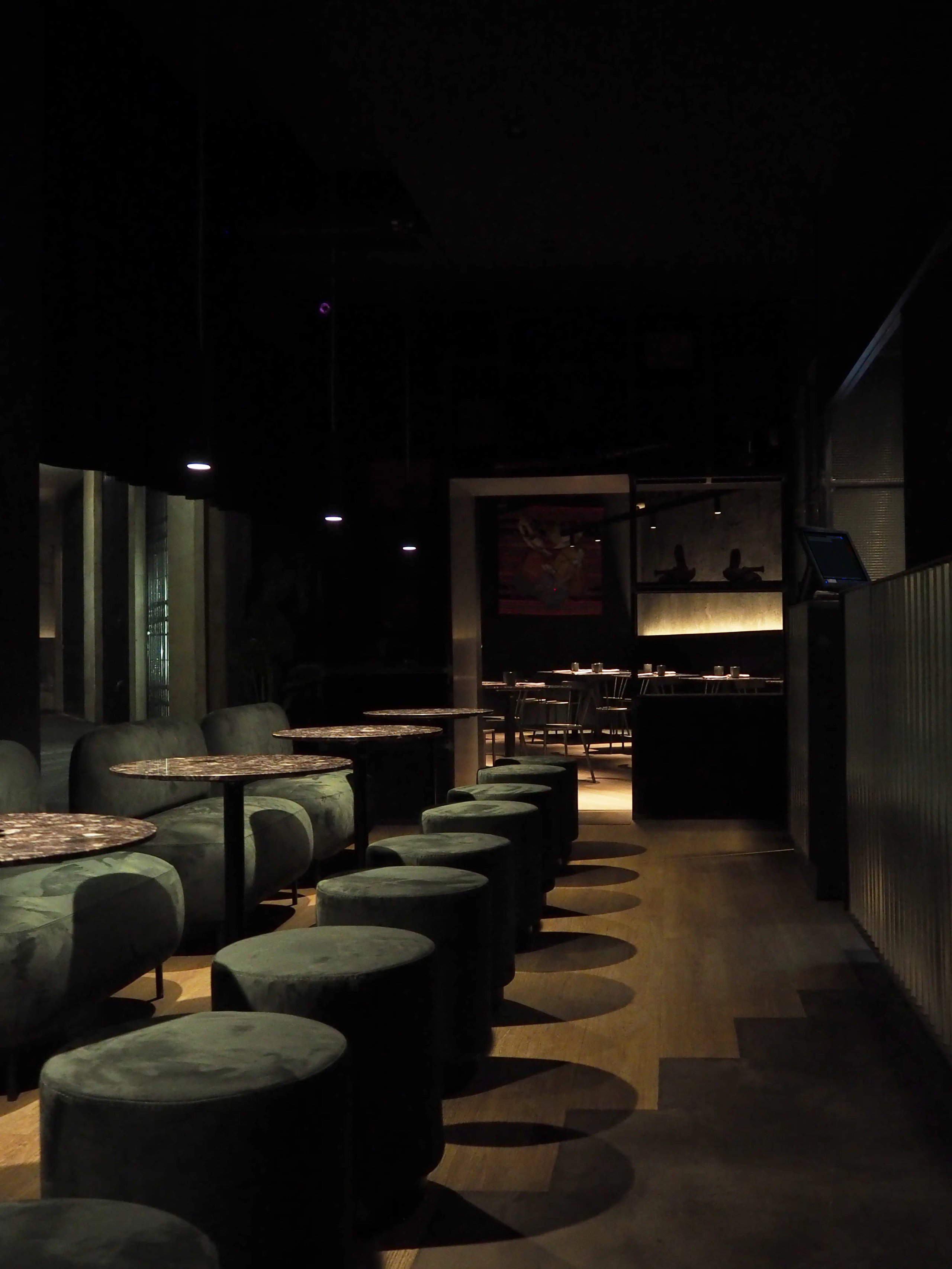 In analogia alla filosofia del locale, gli interni sono stati progettati fondendo un ambiente soffuso dai toni scuri e avvolgenti ad un carattere tecnico industriale.