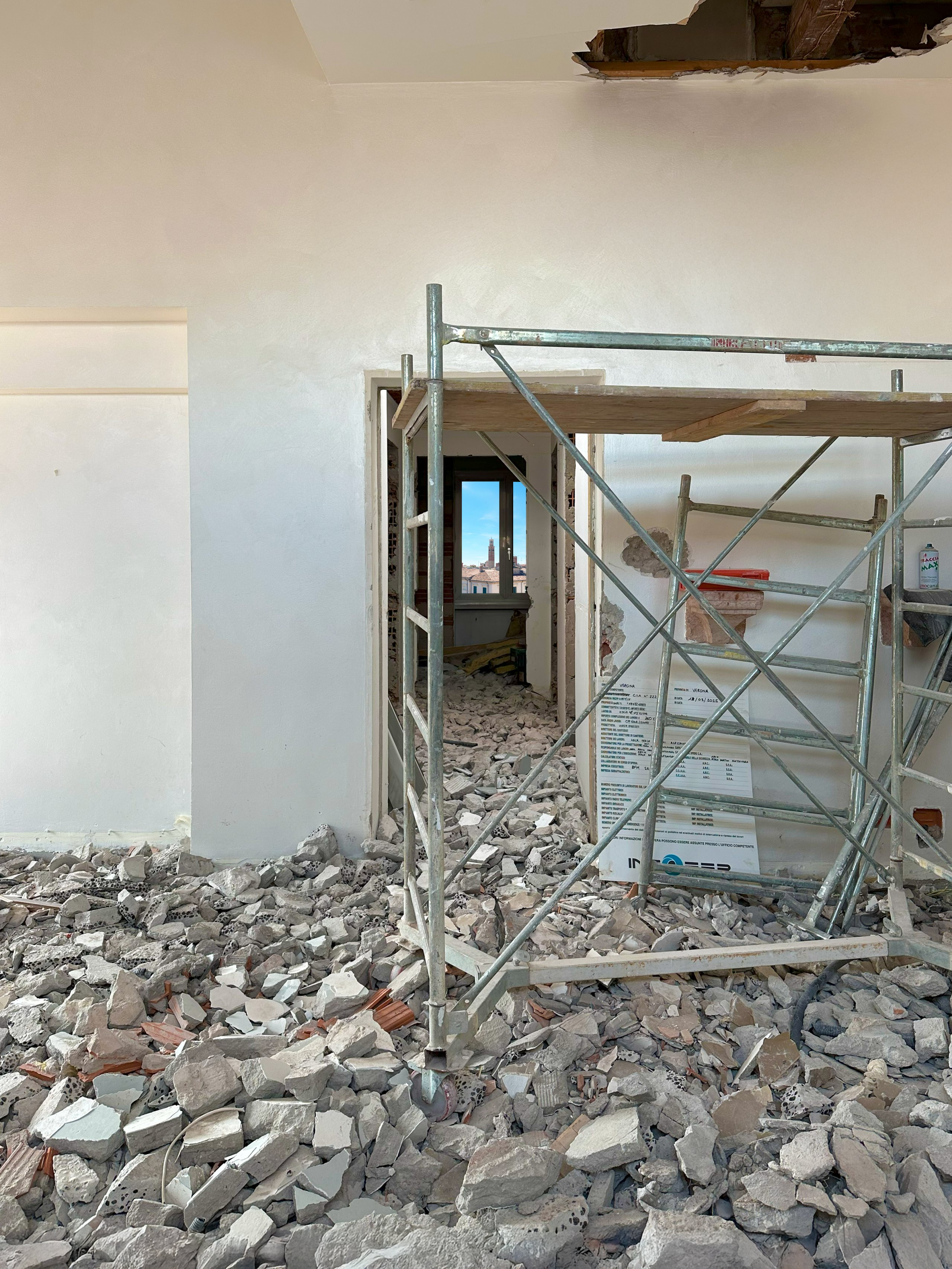 All’interno di un palazzo del centro storico, l’ultimo piano viene completamente ripensato per creare un attico ed una terrazza con delle viste uniche su Verona.